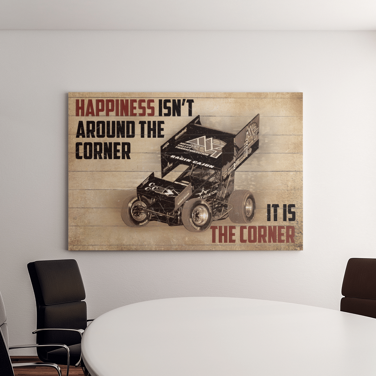 Are you looking for some special gift Happiness Isn’T Around The Corner, Sprint Car Canvas, Poster, Wall Art Poster Print, Canvas Print Wall Decor for your friends, your father, your mother, son, boyfriend, girlfriend? We have this idea for you. This product Happiness Isn’T Around The Corner, Sprint Car Canvas, Poster, Wall Art Poster Print, Canvas Print Wall Decor is perfect for you. Our T-shirt made of ringspun cotton for smoothness and body, and added rayon and polyester for extra stretch, drape, and breathability, this will be your new favorite t-shirt.